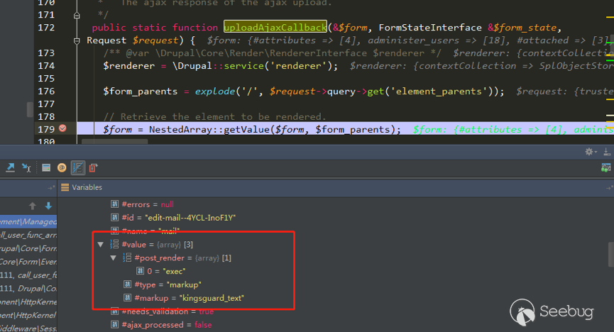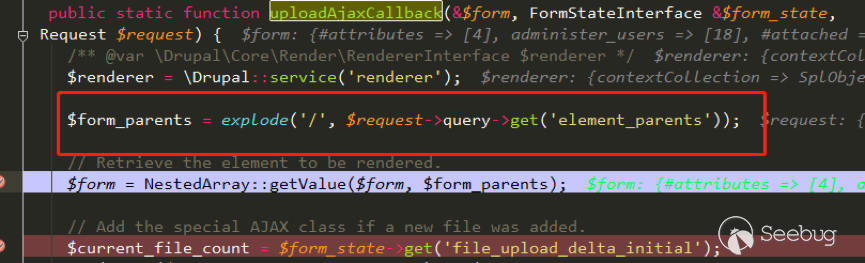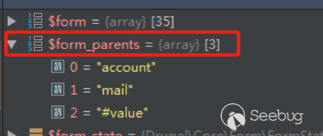 $form_parents變量竟然可以從get中傳入,意味著這個變量可控,其實就是我們poc中的element_parents=account/mail/%23value。