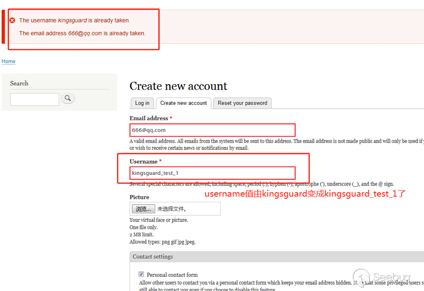這就是剛剛在buildform斷點處把name值由kingsguard改為kingsguard_test_1,返回的頁面里username值也變成kingsguard_test_1的原因。