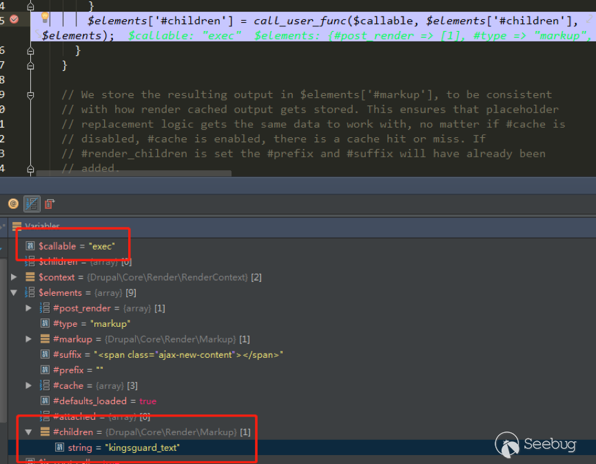 $elements[‘#children’]=”kingsguard_text”(這里我們傳入的惡意代碼,這里我就不演示了)