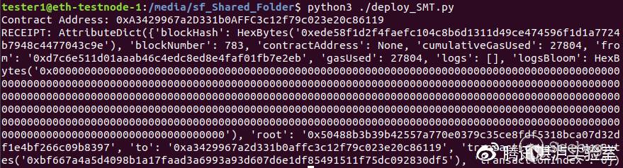 在節點1上,利用deploy_SMT.py腳本中的代碼實現SMT智能合約的一鍵部署。