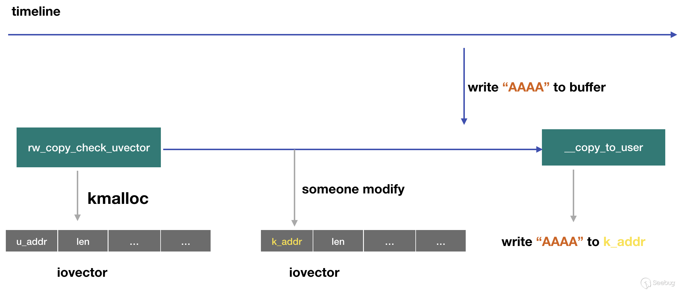 如果在這個時間間隔有辦法對iovector進行更改,那么就可能往非法地址寫入數據: