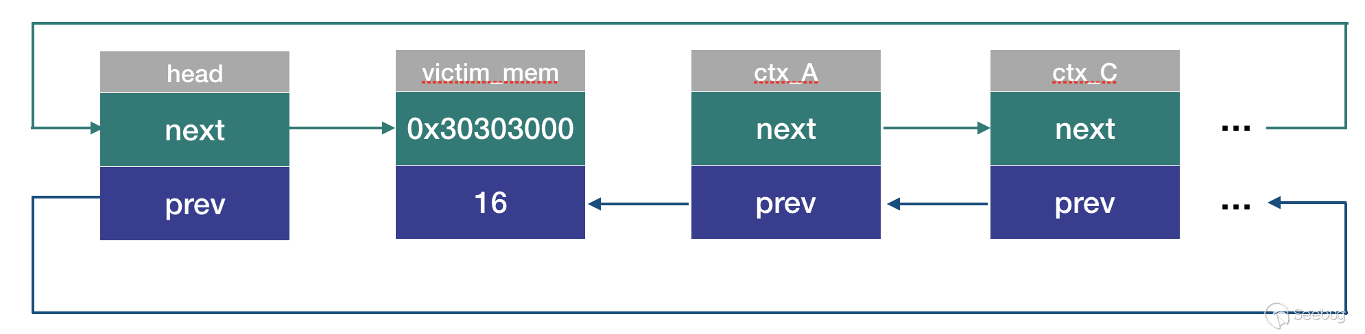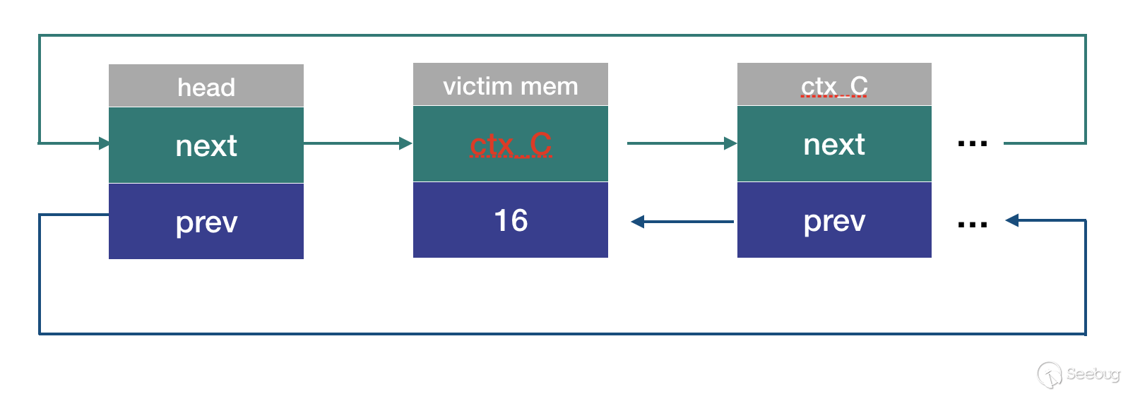 ctx_A->next->prev = ctx_A->prev;//等價于 ctx_C->prev = victim_mem