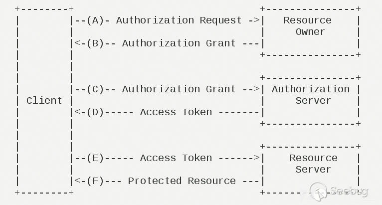 以上圖為例。當用戶使用客戶端時,客戶端要求授權,即圖中的AB。接著客戶端通過在B中獲得的授權向認證服務器申請令牌,即access token。最后在EF階段,客戶端帶著access token向資源服務器請求并獲得資源。