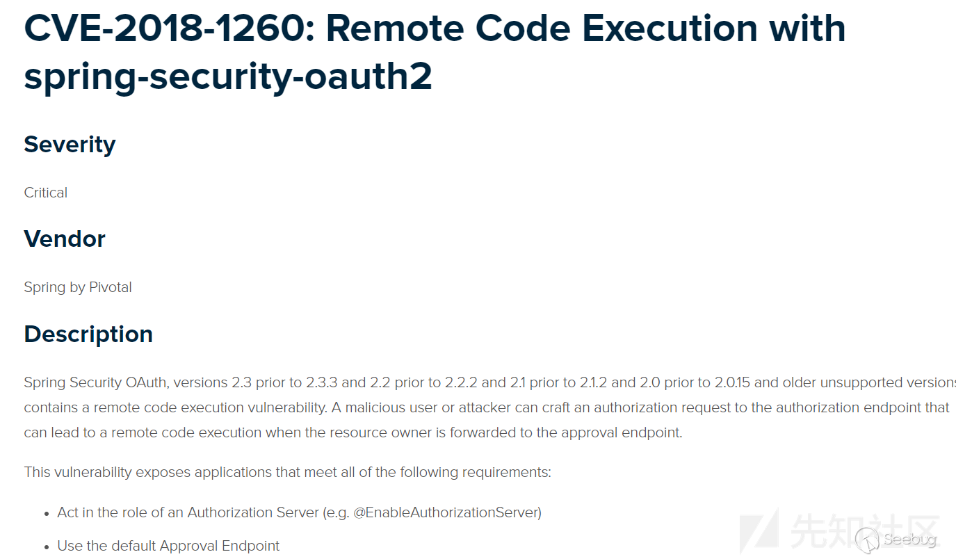 - CVE-2018-1260: Remote Code Execution with spring-security-oauth2