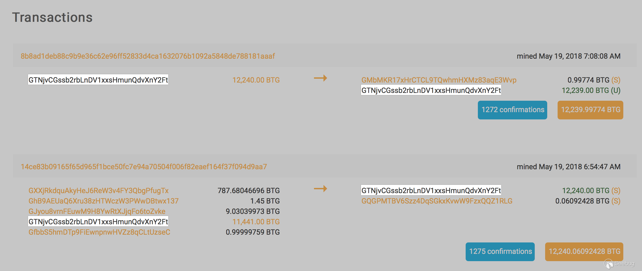 與 Monacoin 類似的,Bitcoin Gold 中攻擊者也將這筆交易同時發給交易所和自己,并成功將自己的私鏈變成最長鏈,從而使得這條鏈重新變為公鏈。值得注意的是,有一筆經過了 22 個確認的交易被成功地雙花攻擊了。