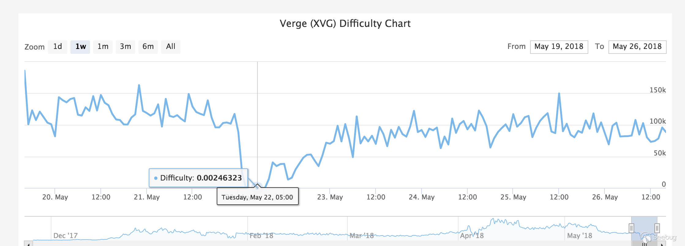 自從 Verge 在4月4日被爆出遭到 51% 攻擊后,開發組已經緊急更新修復了時間戳攻擊加上51%算力攻擊導致算力下降的漏洞。(詳細分析請看站內文章:http://www.freebuf.com/column/169210.html )然而,攻擊者在5月22日發現了一種新的利用方法——反復橫跳。