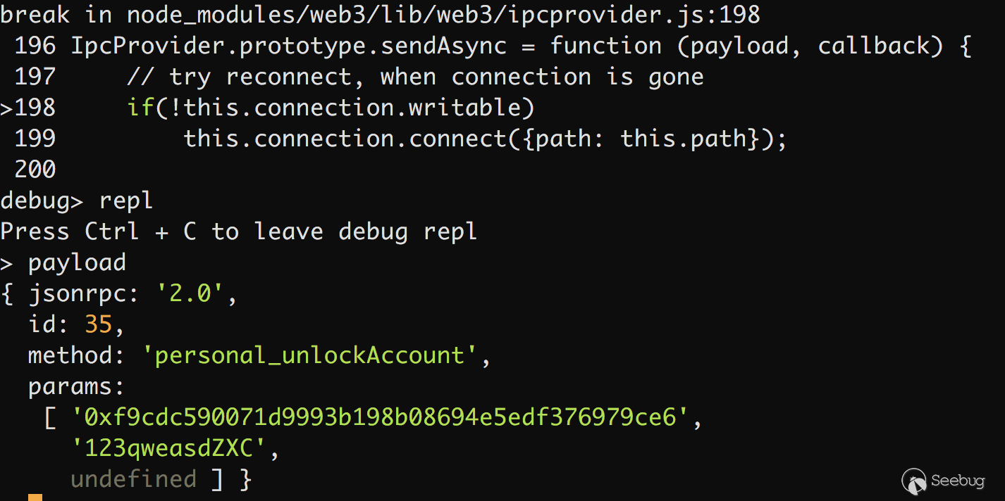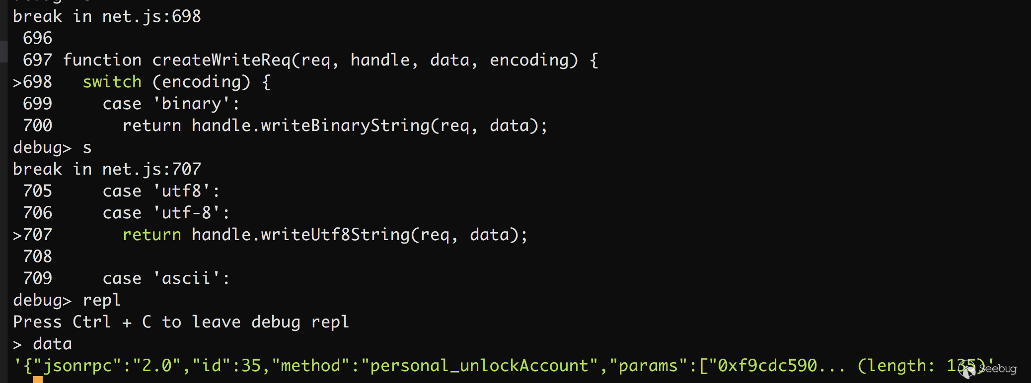 在node_modules/web3/lib/web3/ipcprovider.js中下斷點跟蹤一下數據流。