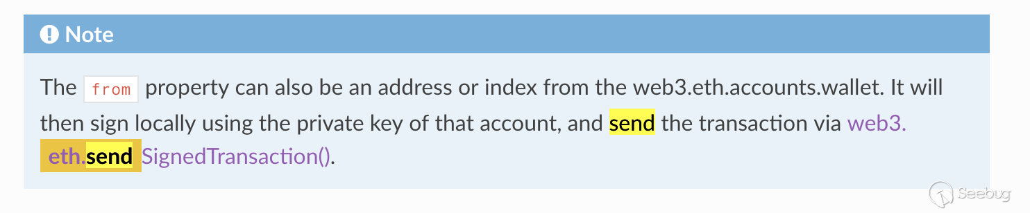 sendTransaction方法會使用已經解鎖后的本地賬戶的私鑰進行簽名,并使用SignedTransaction方法進行發送簽名后的交易。