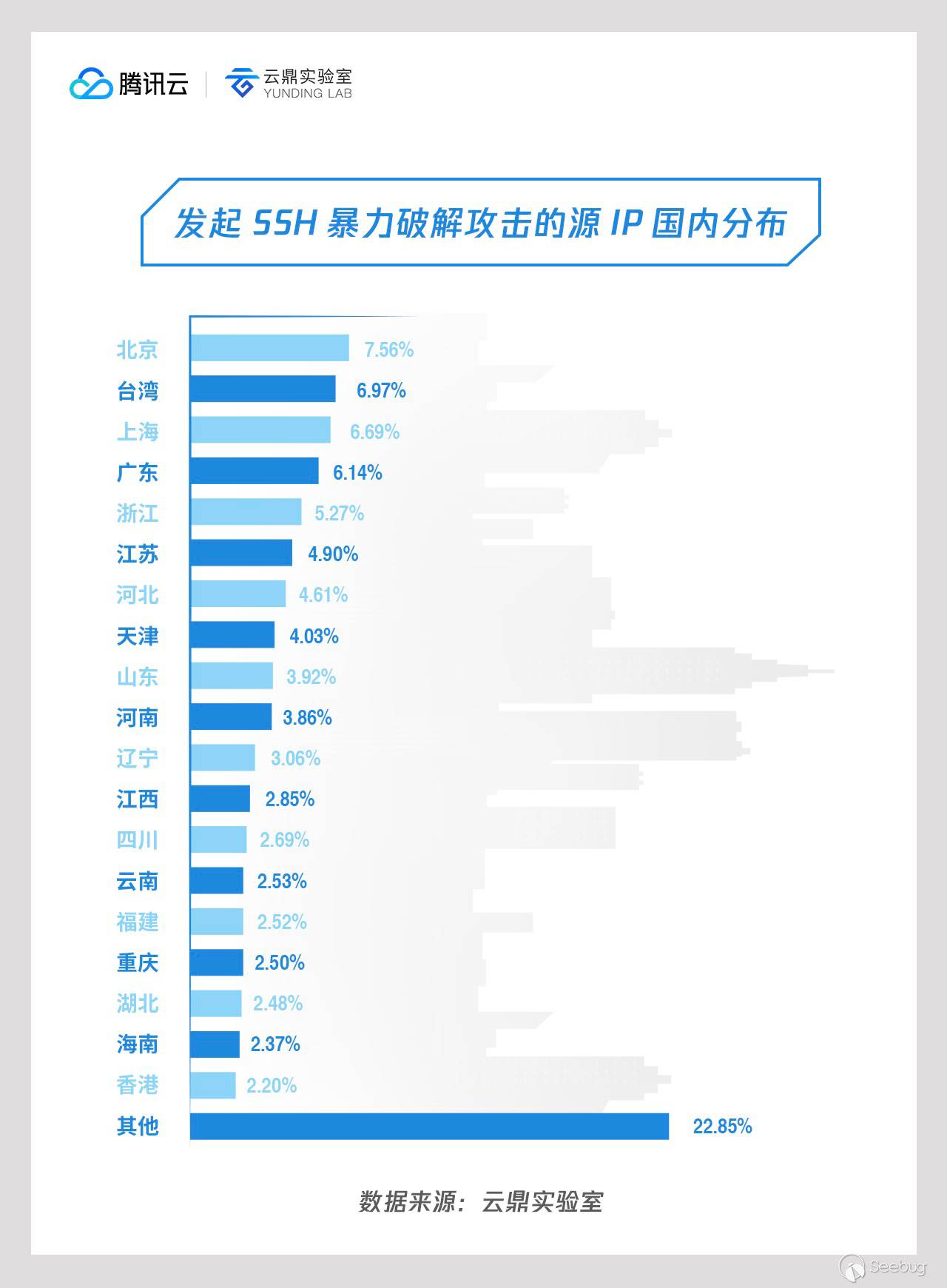 云鼎實驗室針對近期統計的 SSH 暴力破解登錄數據分析發現: