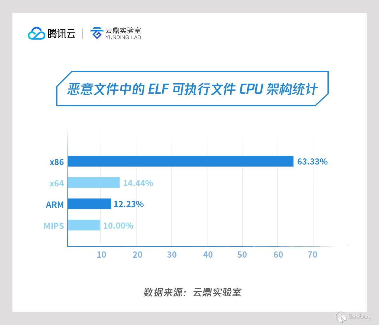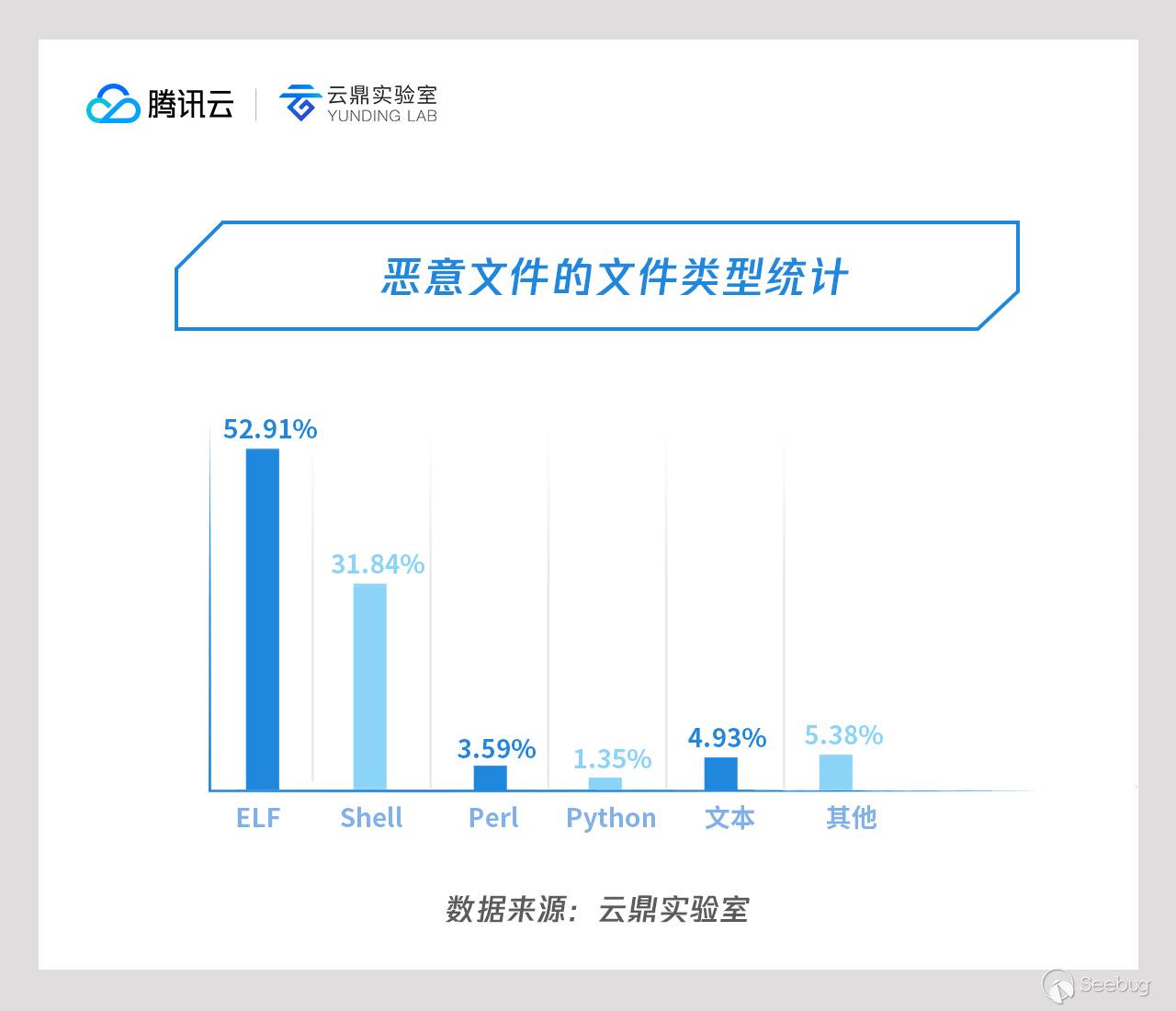 對攻擊后直接植入的惡意文件進行文件類型識別,超過50%的文件是 ELF 可執行文件;在這些 ELF 文件當中,x86 CPU 架構的文件最多,有63.33%;除x86和x64 CPU 架構的 ELF 文件以外,還有適用于 ARM 和 MIPS CPU 架構的 ELF 文件。而其余惡意文件的文件類型有 Shell 腳本、Perl、 Python 等(詳情見下圖)。因為 SSH 暴力破解是針對 Linux 系統的攻擊,因此攻擊成功后多數都是植入 ELF 可執行文件。