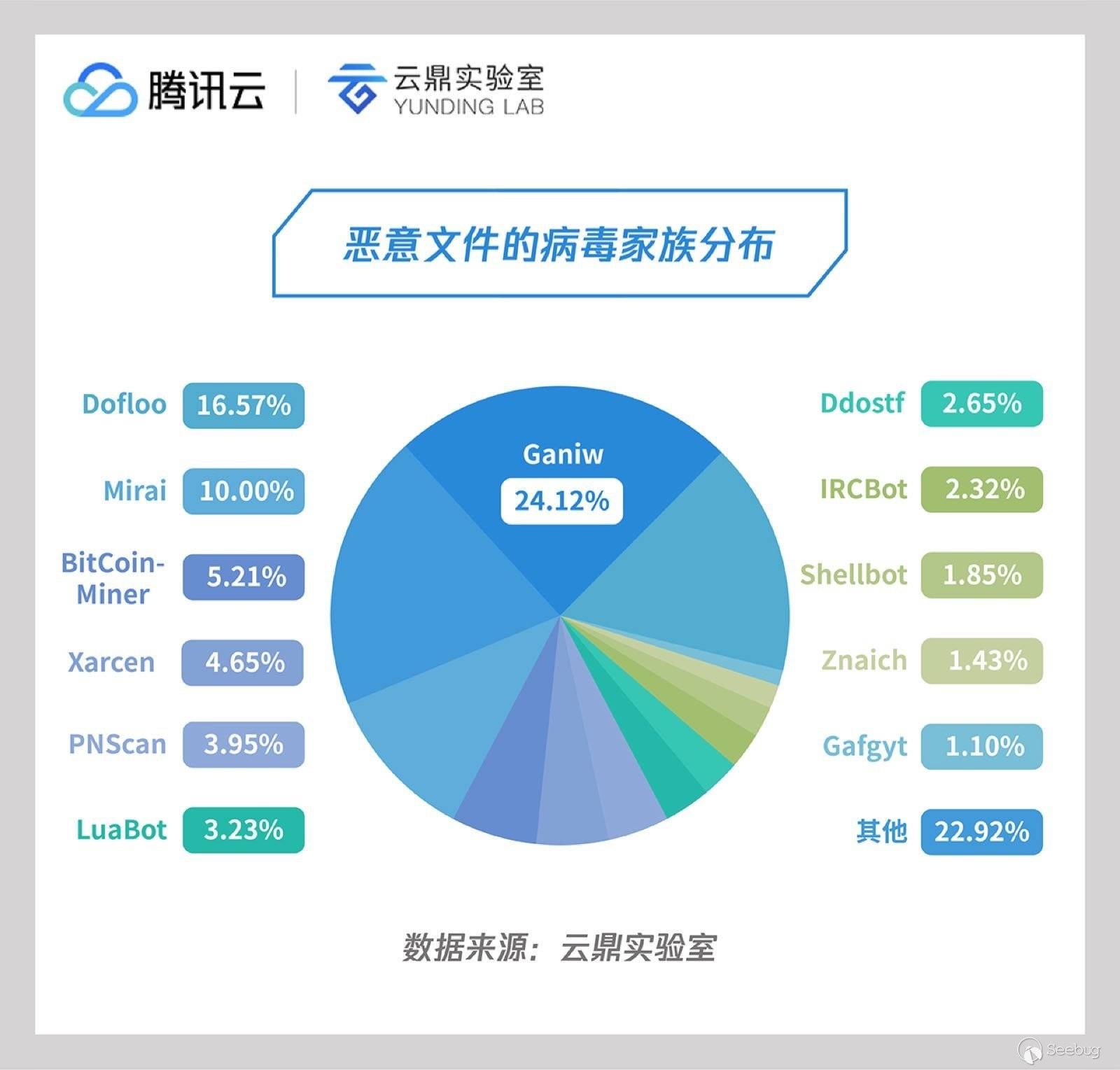 - 攻擊成功后的植入的惡意樣本還是以 DDoS 家族為主,并開始出現挖礦程序[13]。