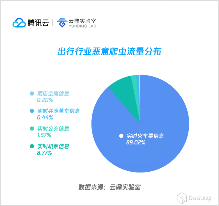 對火車購票平臺的惡意爬蟲訪問占據了出行行業近90%的流量,淺析可知其實比較合理,幾百個城市,幾千趟列車構成國內鐵路網,火車站與車次排列組合后是一個非常大的數據集,隨著人工購票快速向互聯網購票過渡,第三方代購和搶票服務商便越來越多,而任意一家要做到數據實時刷新,都需要不小的爬蟲集群,因此導致火車票購買站點成為爬蟲光顧最頻繁的業務。