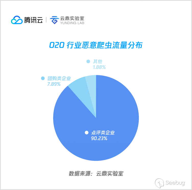 O2O 行業惡意爬蟲主要集中在點評類和團購類公司,其中以爬取商鋪動態信息和星級評分信息的點評類數據為主,占總數的90%以上。