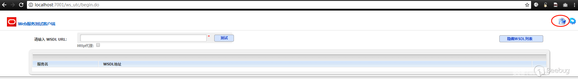 首先在IDE里搭建好WebLogic環境,把應用跑起來后點擊頁面右上方的文件夾按鈕,這里實現的是一個導入的功能