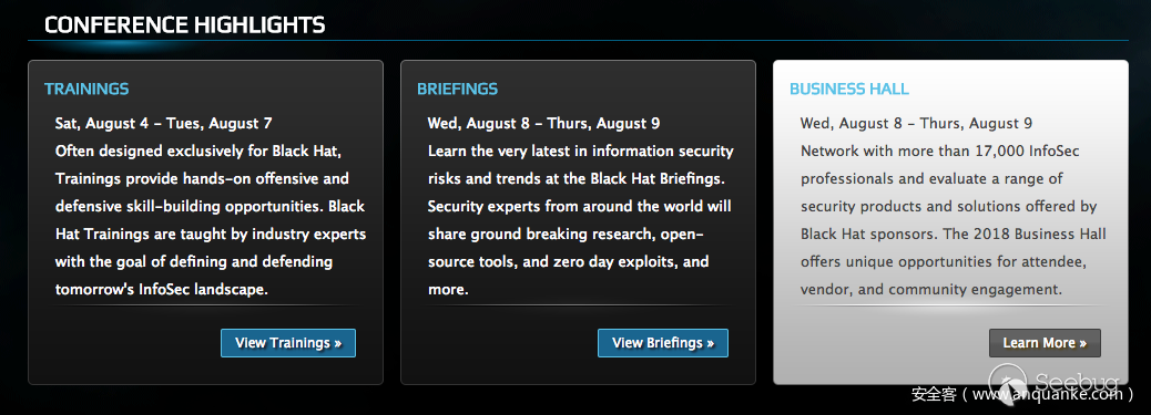 BlackHat USA主要分為三部分: