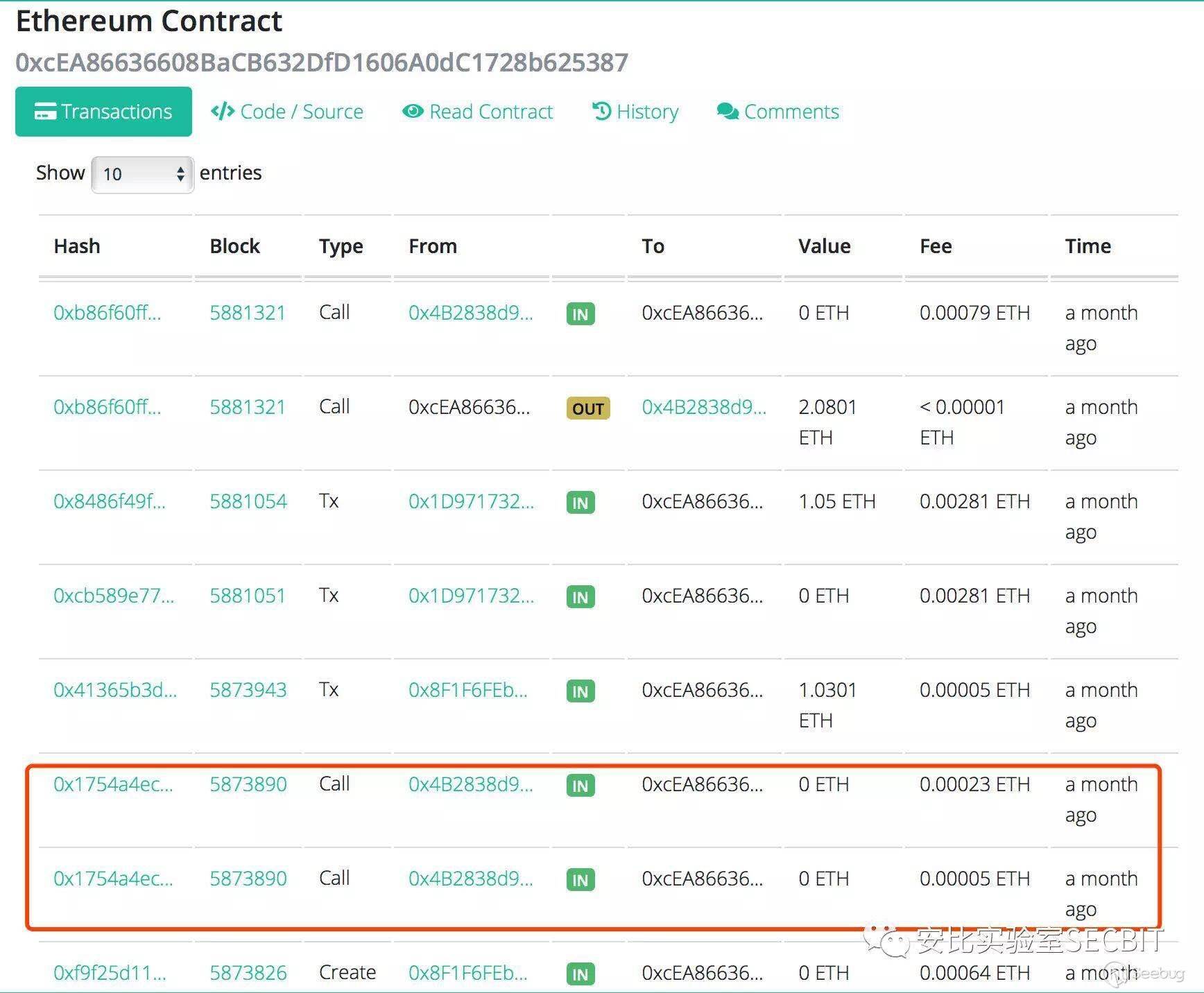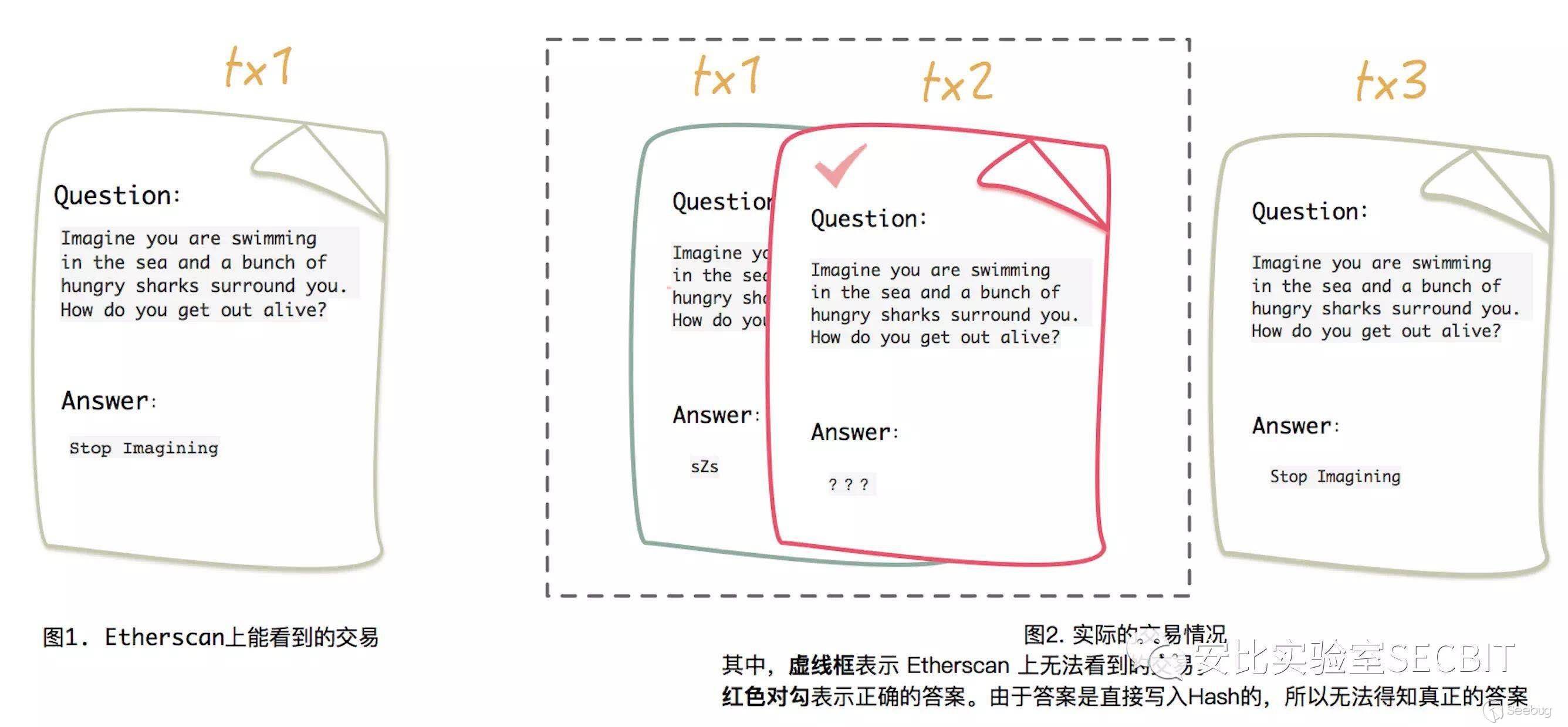由于 Etherscan 上僅涉及ETH轉賬或 Token 轉賬的交易,部分交易不會顯示,合約創建者果斷利用了這一特性來隱藏設置答案的交易,將假的答案暴露在Etherscan 上。讓聰明且有心者誤以為發現了問題答案。