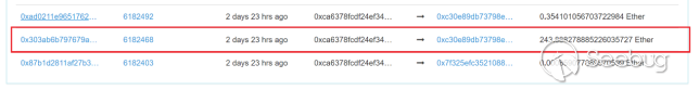 通過etherscan可以看到攻擊者的以太幣提取交易: