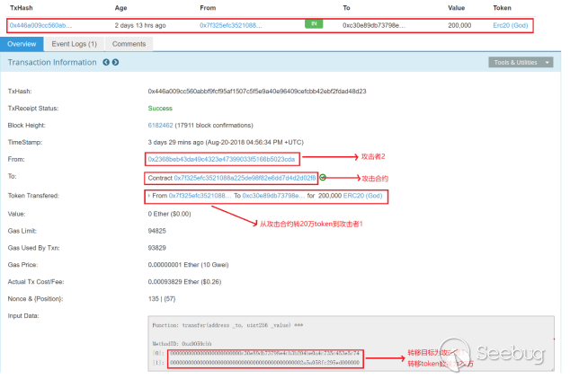 在溢出攻擊的業務邏輯中,攻擊者必須沒有God的token,且