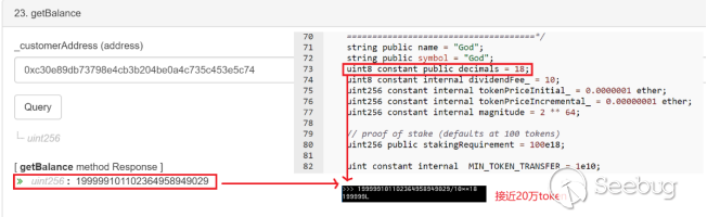 查看攻擊者1在God合約中是否持有token,接近20萬的數量。