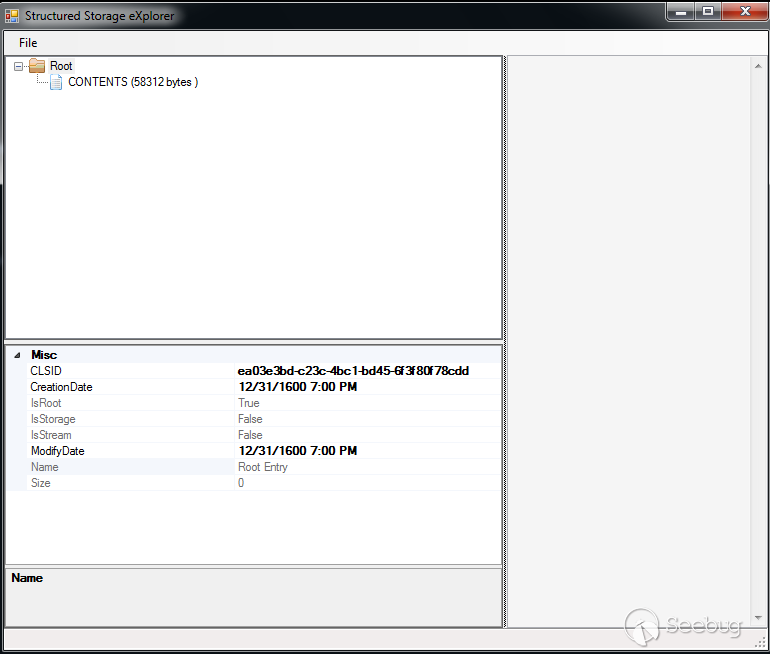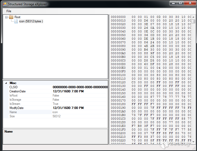 進一步通過Google搜索,我們找到了一款叫做OpenMCDF的工具,下載地址是: http://openmcdf.sourceforge.net 。這樣我們要做的就是在存儲化結構的根節點位置創建一個包含圖片的流(譯者話:這個存儲化結構的概念在很多地方都有用到,比如Office文檔,pdf文件等等),然后通過vbscript再次打開這個文件調用LoadPicture函數。我們使用OpenMCDF工具中一個結構化存儲的界面。