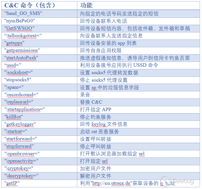C&C命令和其附加數據采用同樣的加密方案傳輸,我們將該惡意代碼變種包含的主要C&C命令及其含義歸納到了表2: