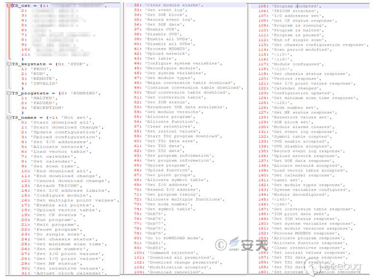 “海淵”(TRISIS)與Triconex的通信主要依賴于TsHi、TsBase、TsLow、TS_cnames等模塊,這些模塊提供了極為強大的遠程連接控制Triconex的代碼。