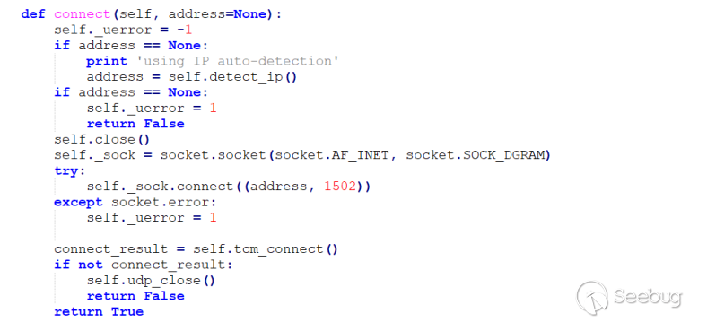 “海淵”(TRISIS)通過在Script_test.py中調用TsLow中的connect函數進行連接,我們以此作為入口點,對其協議進行簡單分析。