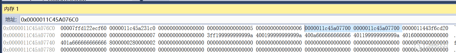 可以看到0x11c45a07700這個segment的地址是緊跟在array(起始地址0x11c45a076c0)后面,這樣的情況稱為inline segment.