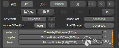 WinUpdate148399843.pif文件則是一個PE文件,該文件使用Themida加殼: