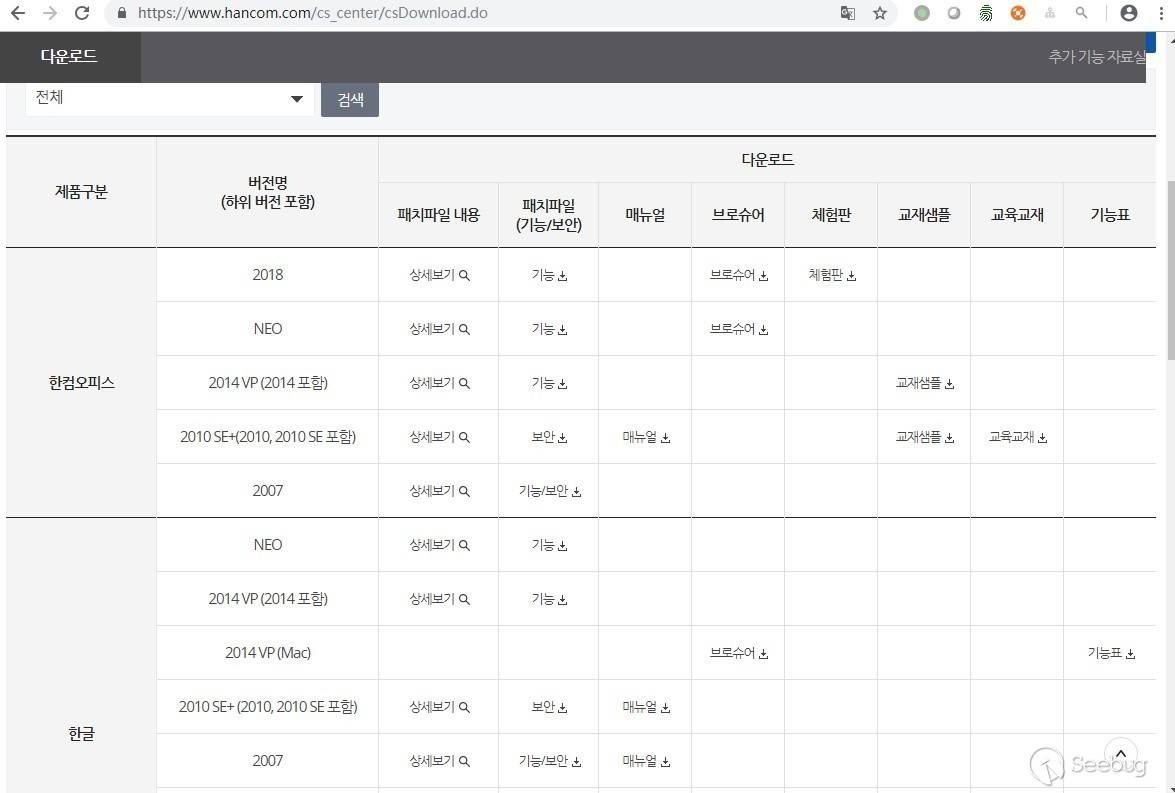 而在它的官網提供兩種語言(英文和韓文),當你以英文的界面語言去訪問該網站時,它的下載中心里所提供的只有ThinkFree Office的系列產品,當以韓文界面語言去訪問時,它的下載中心里所提供的是Hancom Office系列產品,可以看出Hancom公司針對國內還是主推Hancom Office的產品,針對其他非韓文國家則推送ThinkFree Office的系列產品: