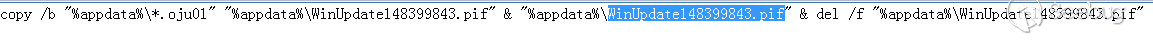 成功利用后會在當前用戶的啟動目錄釋放UpgradeVer45.bat腳本,并且在%appdata%目錄下釋放Dhh01.oju01和Dhh02.oju01文件,當用戶重新登錄時,UpgradeVer45.bat會將%appdata%目錄下釋放的兩個文件合并為WinUpdate148399843.pif文件。