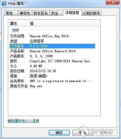 使用安裝了HancomOffice Hwp 2014(9.0.0.1086)的環境打開捕獲到的惡意HWP文檔,以下是Hancom Office版本信息: