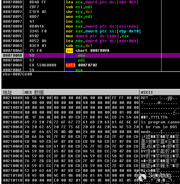 最后內存執行解密后的PE文件: