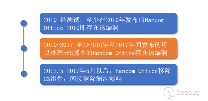 理論上2017年5月之前開發的支持EPS腳本解析的Hancom Office軟件都受該漏洞影響。