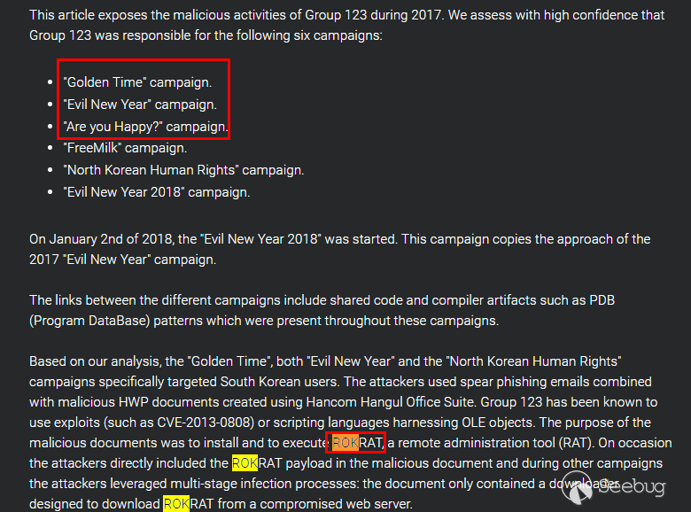Group 123團伙曾在多次活動使用ROKRAT: