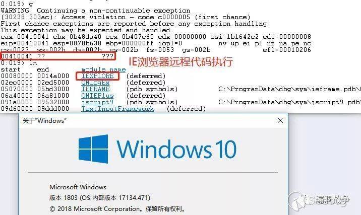 比如本周 Microsoft 安全公告出來后,我仔細分析了下,然后下班回家寫了個Fuzzer,掛著跑了一天,出來個Crash,再用幾分鐘成功構造出PoC,實現IE瀏覽器的遠程代碼執行,可見也是個品相極佳的神洞: