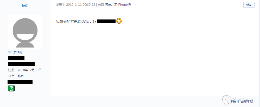 除了這條我還找到了一個論壇,他在論壇的帖子中暴漏了姓名和手機號