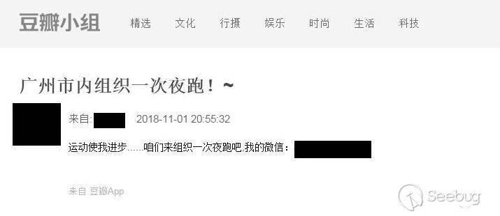 在網絡上檢索與這個微信有關的內容,很快就找到了一條豆瓣貼,組織廣州市內的一次夜跑,而小菲恰恰是廣州的,同樣是喜歡運動,那她有參與嗎?