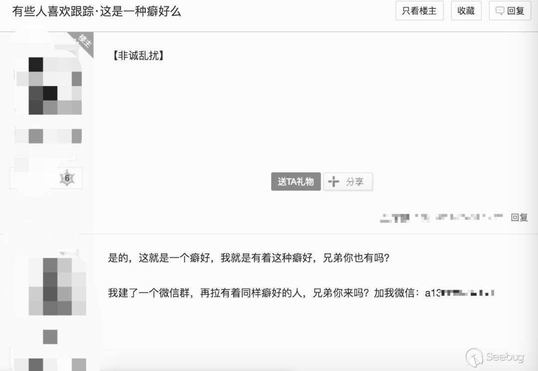 同時我還發現他建立了一個交流群,你沒聽錯,群里集聚了和他一樣有跟蹤癖好的人。