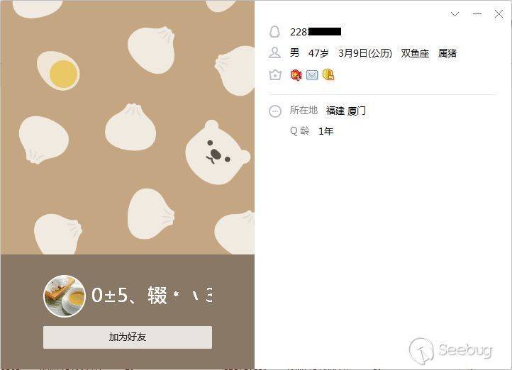 搜索這段數字的確是QQ號碼,Q齡只有一年,我覺得是為了嚇唬女生特意去買的帳號。