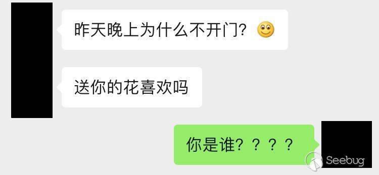 直到天亮小菲才敢出門,開門發現門上的貓眼被人用紙貼著了,門上還用膠帶粘著一支玫瑰花,到中午的時候有人在微信給她發了條信息:“問她昨天晚上為什么不開門,喜歡這花嗎?”