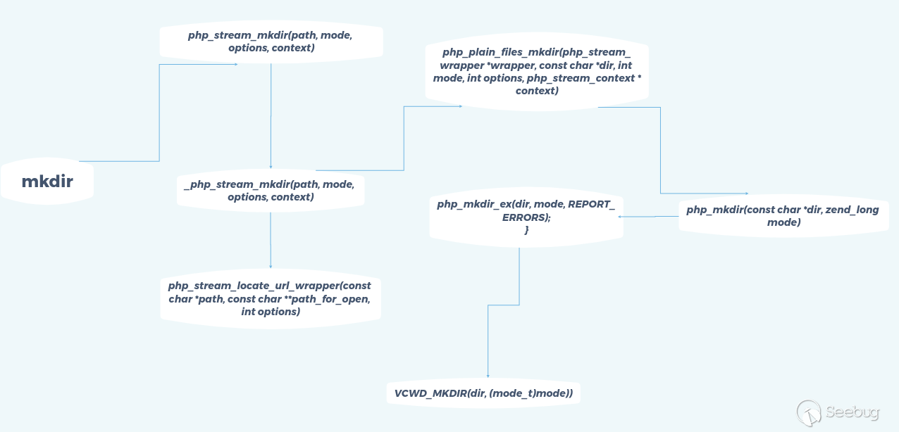 但是第一個mkdir即使為true卻也沒有創建1?目錄 ,這里我們從php內部mkdir執行情況 和 系統 mkdir 執行情況來探究。