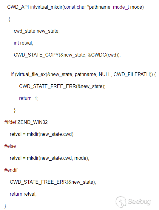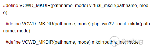 首先會檢查open_basedir,接著會進入VCWD_MKDIR,VCWD_MKDIR是個宏命令,有三種不同定義: