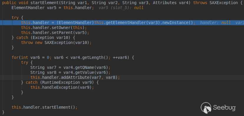 首先看下DocumentHandler的startElement: