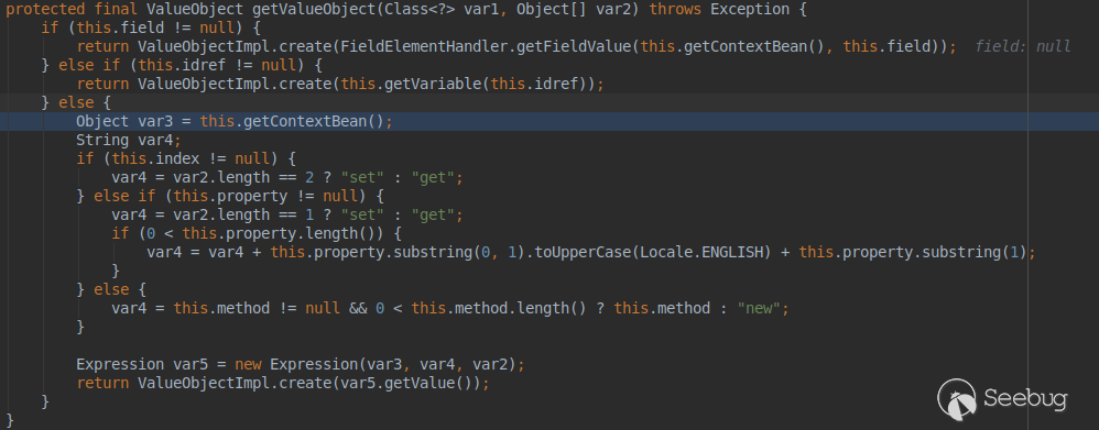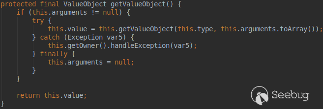 略過中間步驟,再次進入ObjectElementHandler的getValueObject方法: