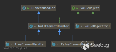 一般的對像由ValueObjectImpl進行包裹,而null\true\false(非boolean標簽)則直接由自身Handler進行代表,實現相關接口。