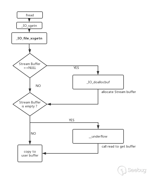 這個_IO_new_file_underflow函數,是最終調用系統調用的地方,在最終執行系統調用之前,仍然有一些檢查,整個流程為: