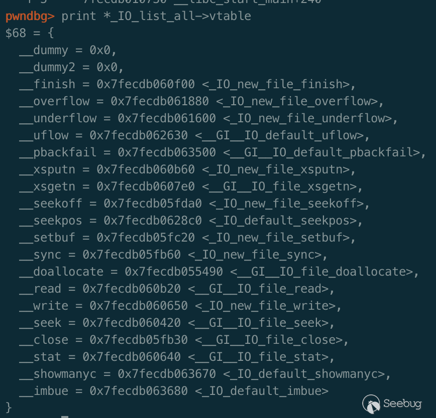 vtable中的_IO_file_doallocate調用了vtable中的__GI__IO_file_stat以獲取文件信息。